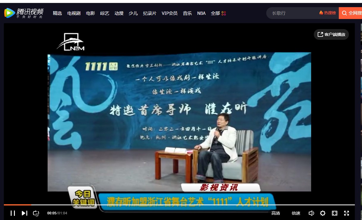 腾讯视频:濮存昕加盟浙江省舞台艺术“1111”人才计划