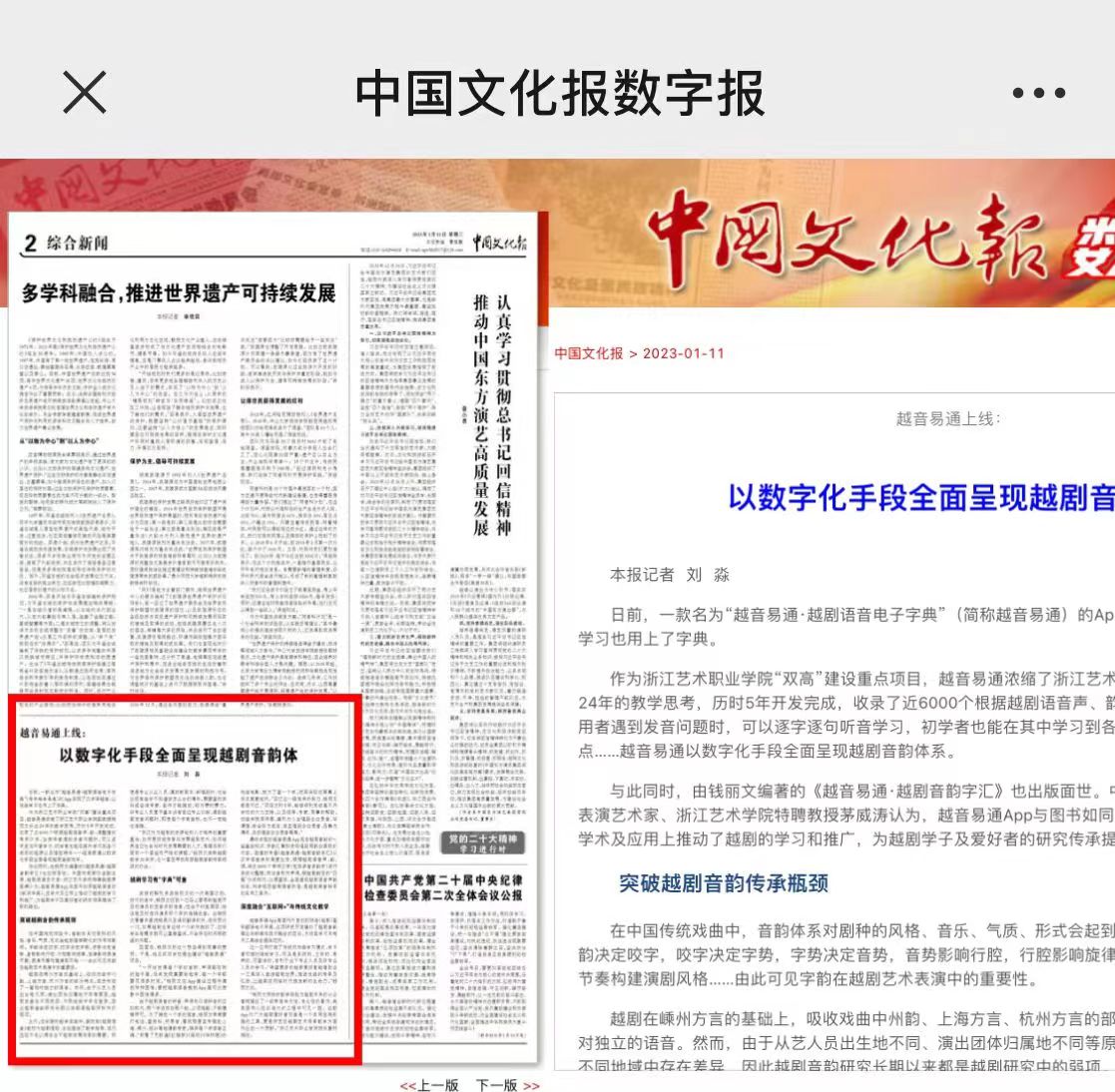 中国文化报:越音易通上线:以数字化手段全面呈现越剧音韵体