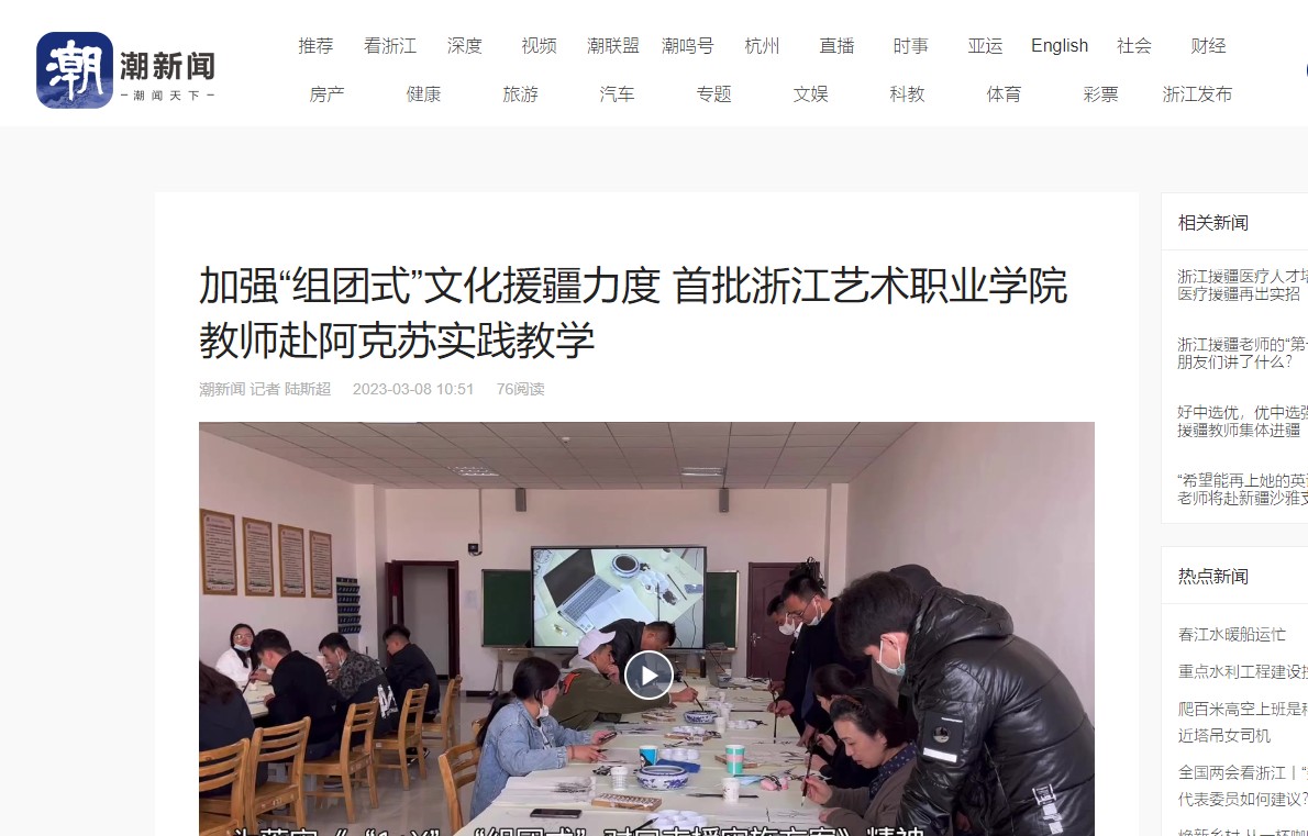 潮新闻:加强“组团式”文化援疆力度 首批浙江艺术职业学院教师赴阿克苏实践教学