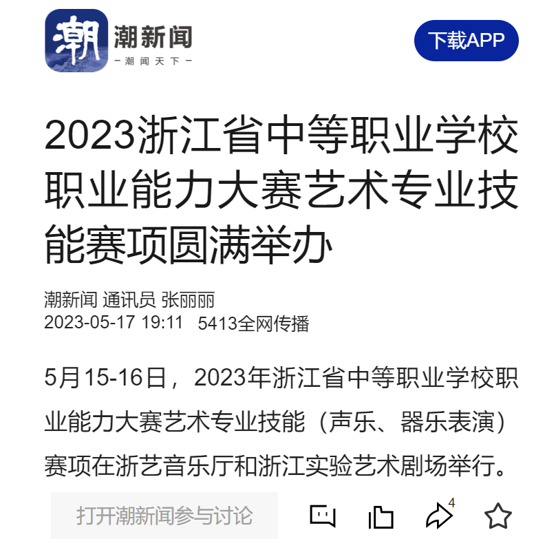 潮新闻:2023浙江省中等职业学校职业能力大赛艺术专业技能赛项圆满举办