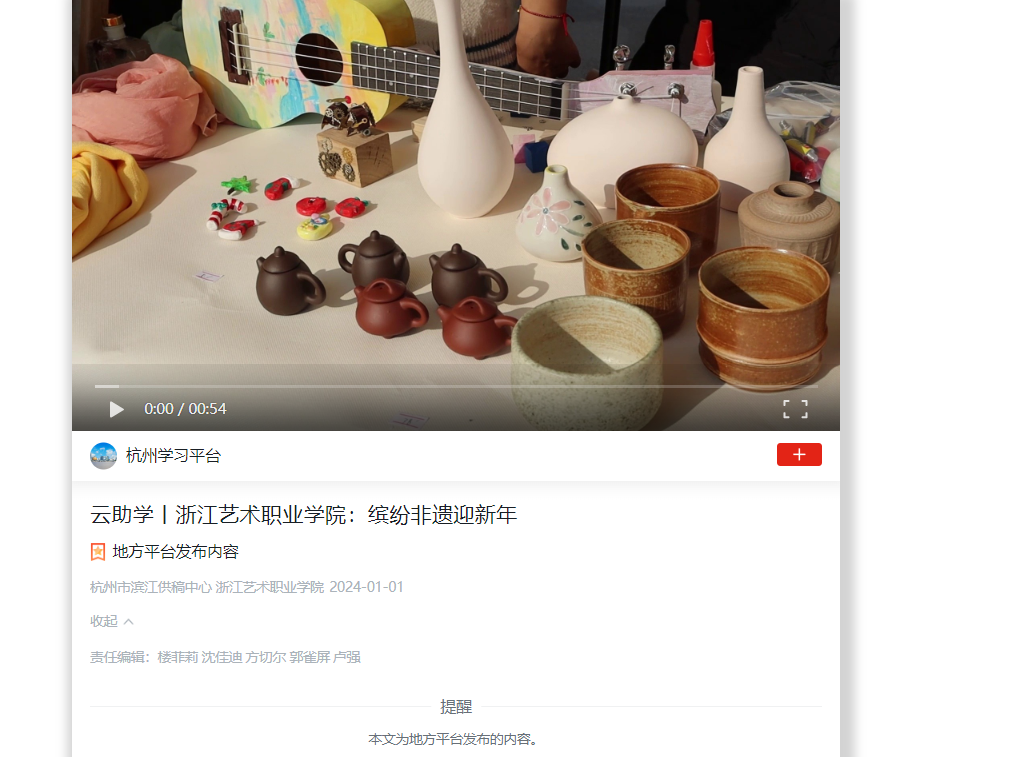 学习强国杭州平台:云助学丨浙江艺术职业学院:缤纷非遗迎新年