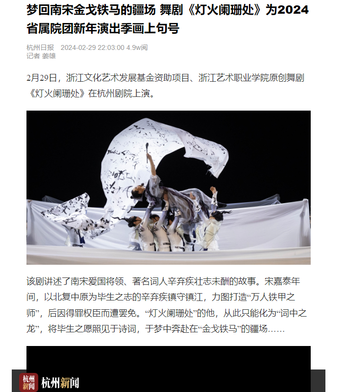 杭州新闻:梦回南宋金戈铁马的疆场 舞剧《灯火阑珊处》为2024省属院团新年演出季画上句号