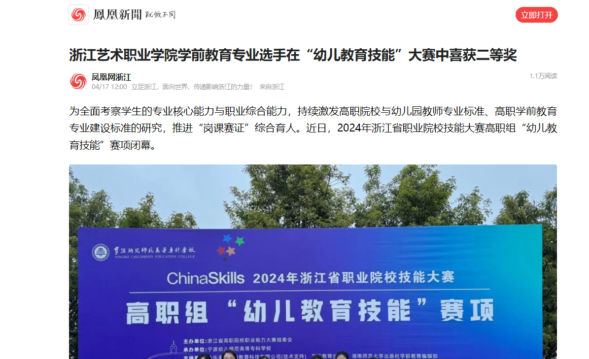 凤凰新闻:浙江艺术职业学院学前教育专业选手在“幼儿教育技能”大赛中喜获二等奖