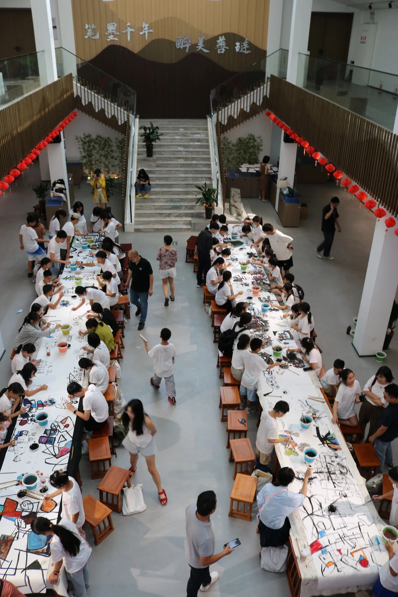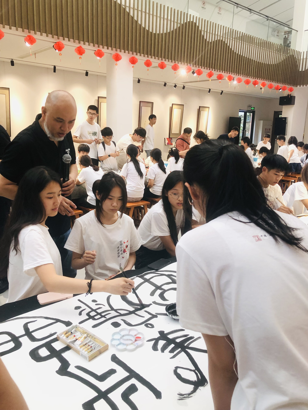 结业式下午,王晓明教授引领三地师生共绘百米长卷,展现汉字艺术水墨魅力。