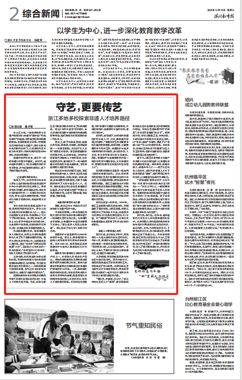 经过近20年的探索和实践,浙艺职院在戏曲专业人才培养上已经从越剧延伸到昆剧、绍剧、瓯剧、甬剧、姚剧、松阳高腔等诸多剧种,为多个戏曲院团培养了大批专业艺术人才。此外,该校还通过开设全校性非遗通识公选课、开发“非遗与生活”中英文双语系列教材等,让学生了解非遗、热爱非遗、传播非遗。