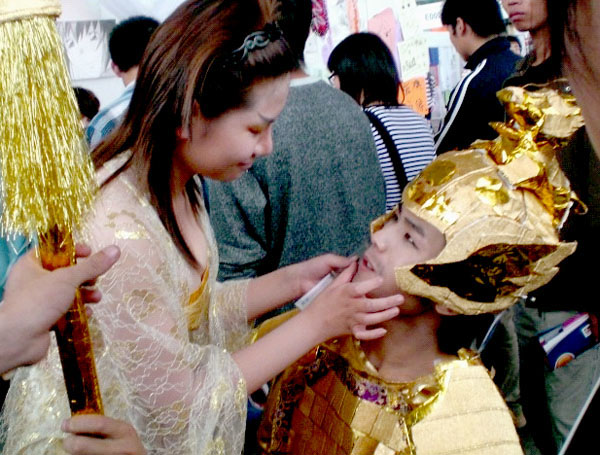据了解,“翼漫堂”这次选择排练《满城尽带黄金甲》,是因为它富有中国文化的特色和魅力。在上届COSPLAY比赛中,同学们演的是韩国电影《王的男人》,而这次,同学们选择了中国电影来表演。威武的戎装、锃亮的长枪……这些引人注目的道具都是由我院“翼漫堂”道具组的同学们自行设计和缝制的。记者在现场看到,有几位同学正拿着剪刀、双面胶等在一旁忙碌。记者采访了几位参与演出的同学,他们说:“虽然排练颇为辛苦,也占据了不少课余和休息时间,投入了很大精力,但是能拿到这个奖项,我们都很高兴。”