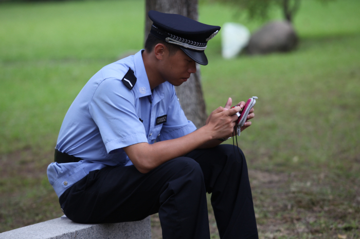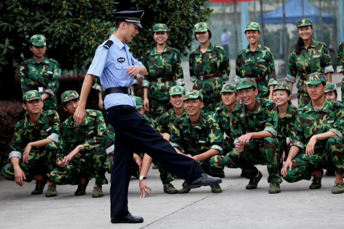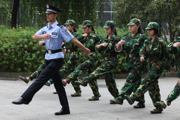 趁着休息的时候给同学们做做示范是常有的事儿。“看好了啊,正步就应该这样踢,哥这才叫标准!”