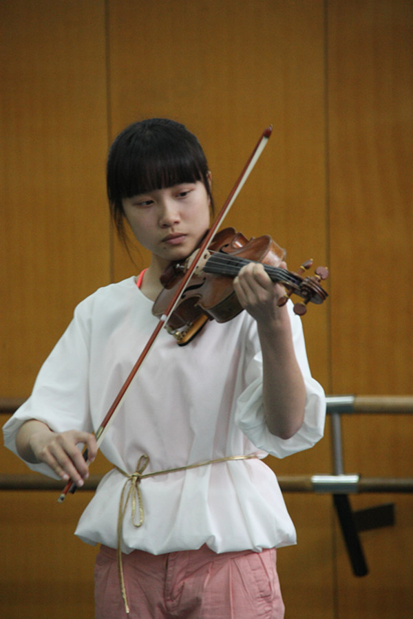 女生拉起小提琴,悠扬的旋律在安静的音乐专业的考场里面响起,吸引人在场所有人……