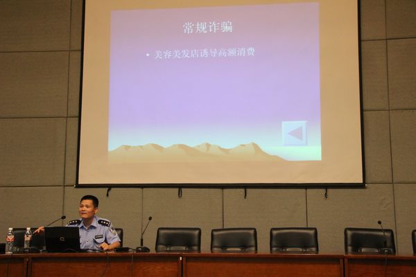 新生在校就读期间安全问题必定是当前首要。为此,我院特别邀请滨江浦岩派出所民警沈建松警官就学院周边的安全问题给同学们上课讲解。他在讲解中主要提到平时出校门应该注意的事项、如何应对突发危险及提高自我防范意识等等,在场同学受益匪浅。