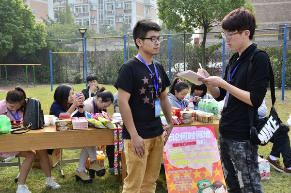 院学生台子设在操场一角。这次为迎接学院运动会,发挥学生会自我管理、自我服务的理念,在每个赛点都安排了大批的学生志愿者,帮助裁判员、保安维持秩序。如若有东西遗失,遇上困难和难题“有事请找学生会”。