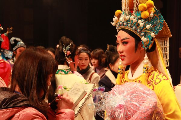 在“装病探病”一幕中,皇甫少华和孟丽君两人物间的交相辉映,逼真刻画出主人公内心的煎熬,让台下观众忍俊不禁。第五场“金殿会审”,大臣的争执与孟丽君的精彩辩论相得益彰,让观众不禁为孟丽君的妙语连珠拍案叫好。在“御苑脱险”一幕中,皇帝与孟丽君通过肢体语言,将策马狂奔、走马过桥的神态极其生动地展现出来,让人印象深刻。所有这些完美瞬间与09越剧班学生们的良好合作精神是分不开的,充分展现出她们扎实的基本功。整场演出下来,每一个精心的细节都引来如潮般的掌声,古筝、大提琴、萧、二胡等乐器的伴奏让演员们的表演与剧情更加丝丝入扣。剧中皇帝的扮演者王楚然在台上威风八面,台下的她也是自信满满,对未来充满期待。她说:“毕业之后,我会更加努力地传播正能量,以回报学院领导和老师们的辛勤培养,还会悉心钻研专业技能,以求得更大突破。”
