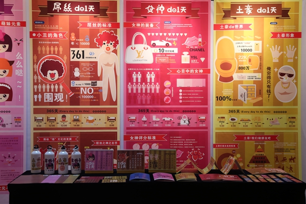 以图像形象化为主的“生僻字大字典”,以及一系列衍生而出的展品,颇具趣味的FLASH亦是为展览增色不少。还有悬挂在墙上的各式海报、以海洋为主题的首饰设计、大胆创新的概念性设计“经”等吸引了大家的眼球。
