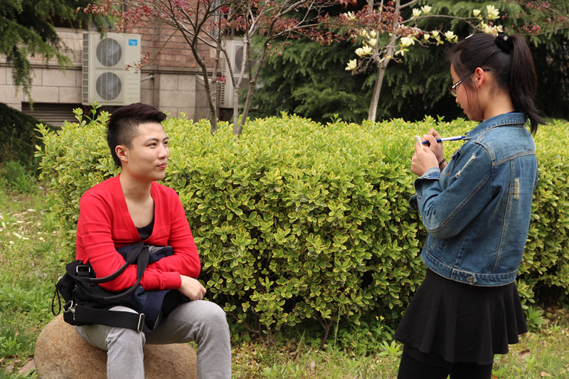 刚考完影视表演的他,悠闲地坐在石头上等待同学。从他的眼神中透露出坚定和自信,三年的系统学习,他认为这次专业考,发挥不错。家人的鼓励和自己的执着坚持,让他觉得将来自己定能在演艺道路上,闯出一片天地。