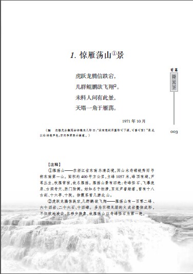 诗集不仅有诗有文有注,还有书画摄影,有书坛泰斗沙孟海题赠作者的“水清则智”书法、美术家肖峰题赠作者的“个中有画”书法以及作者的绘画、书法和摄影作品。最令人动容的是,诗集首页刊有一张上世纪50年代的老照片,一位父亲和5位小孩的合影,作者是照片中的长子。照片的上端赫然写着:“谨以此诗集献给我的父亲和天下的父亲们!”并在后记中“注释”道:这本诗集“也是一位父亲有意无意间给孩子购买了一本有关于思想、人格、品位的课外读物的故事……”