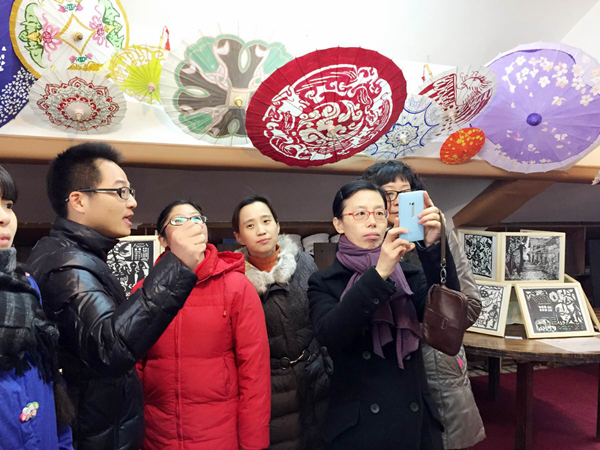 12月23日上午,文化管理系12级非遗班在八号楼九楼举行“非物质文化展览、保护、传承”毕业作品展。院党委书记林国荣、副院长朱海闵、副院长沈恒、文管系副主任(主持工作)陈子达等领导出席并参观了本次展览。