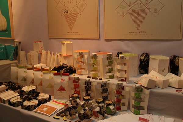 在众多作品中,《星乐照明包装创意设计》最为夺人眼球。以暖橙色为主调,加入具有星空效果的趣味元素,用自身产品为装饰物展现环保设计的主题。用具有一定透光性和柔韧性的方形纸片经过反复折叠形成灯泡包装造型元素,再用多个元素进行叠加拼接的方法组成一盏盏六角、八角灯。背景墙上播放着灯泡包装的制作过程,展台上摆放着处于制作过程的半成品,增强了与观众的互动性。