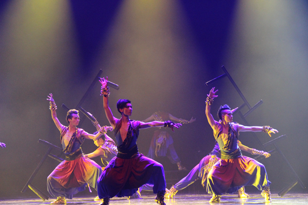 晚会通过展示“基训”、“身韵”和“剧目”这三大核心课程教学内容,使课堂教学“舞蹈化”,用另一种方式将舞蹈演员培养和训练过程得以呈现,加深了观众对中国舞专业的了解。在“基本功训练”部分,通过详实的舞台动作分解,将枯燥的基本功训练进行有序放大,舞者们一个接一个的高难度动作让台下观众为之折服,每个动作都显得从容不迫,展示了男生强有力的速度与力度。在“古典舞身韵”部分,男生们将每个组合的“形、神、劲、律”很好地融合,轻重、缓急、强弱、长短、刚柔,不但体现了中国古典舞的圆、游、变、幻之美,更是让广大观众感受到男性舞者的独特魅力。“舞蹈剧目”展示环节中,许多经典剧目再度被演绎,《狼图腾》的桀骜不驯,《凳之龙》的龙驹凤雏,就像是一次历练,印证了男儿成长的瞬间,将晚会气氛推向了高潮。
