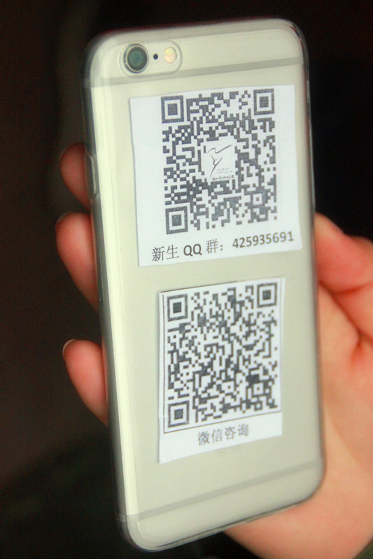 报名现场,一张小小的二维码引起了大家的注意。这是一个由机电摄影社组织发起的活动,开辟交流平台,邀请报考滨江高校的新生加入。扫一扫便可以加入到新生群,使新生有一个可以交流的平台,群里有师哥师姐和老师,将会第一时间帮助新生处理在未进去大学校门时所存在的疑问。