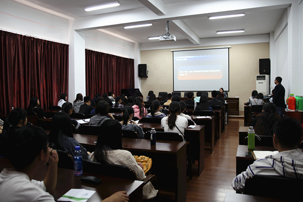 讲座中,读秀学术搜索培训专员徐鸽首先为师生详细介绍了“读秀”的特点和各项检索技巧,并简要介绍歌德电子书借阅机使用方法。随后,万方知识服务平台培训专员刘叶子以《我的论文我做主》为题,介绍了如何利用万方数据库帮助论文选题和写作。最后,川页科技有限公司的许建宾简要介绍了KUKE数字音乐图书馆和起点自主考试学习系统的情况,并与师生进行了愉快互动。