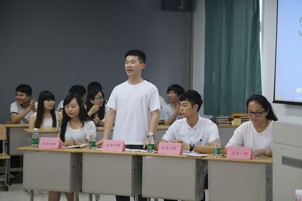 双方辩手入场。正方观点是“先就业后择业”,反方观点是“先择业后就业”,各选手声音洪亮,条理清楚,气氛渐入佳境。最精彩的要属自由辩论,犹如两军对垒,扣人心弦,每个选手都使出浑身解数。还没从精彩部分回过神来,比赛已近尾声,最后正方获得胜利,正方一辩获得本场比赛最佳辩手。
