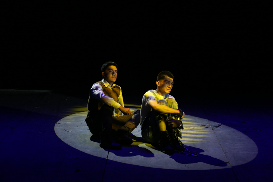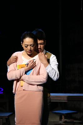 《死前一课》根据诺贝尔文学奖提名人欧内斯特·盖恩斯的小说"A Lesson Before Dying"改编而来,讲述了发生在20世纪40年代的路易斯安那州的一段往事,黑人杰弗逊在一桩酒店枪击事件中阴差阳错地被白人指控蓄意谋杀并判死刑,他的老师用智慧和人格给自甘堕落的杰弗逊上了临刑前的最后一堂课。演出还未开始,演播厅外的走廊已人满为患,大家有序地在门外等候着。舞台上场景道具精细,演员、道具师、灯光师们严阵以待。演出正式开始,伴随着绚丽的灯效和辗转的乐声,舞台上13影视表演2班的同学们向大家展现他们娴熟的演技和细腻的情感,将他们耗时三个多月排练而成的这出大戏演绎得淋漓尽致、高潮迭起,令在场观众如痴如醉。