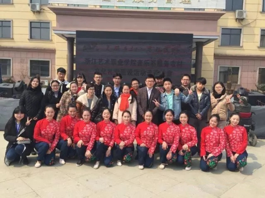 3月26日上午,音乐系师生前往富阳永昌镇长盘村参与2016年度省级文化系统——农村文化礼堂建设服务活动演出。