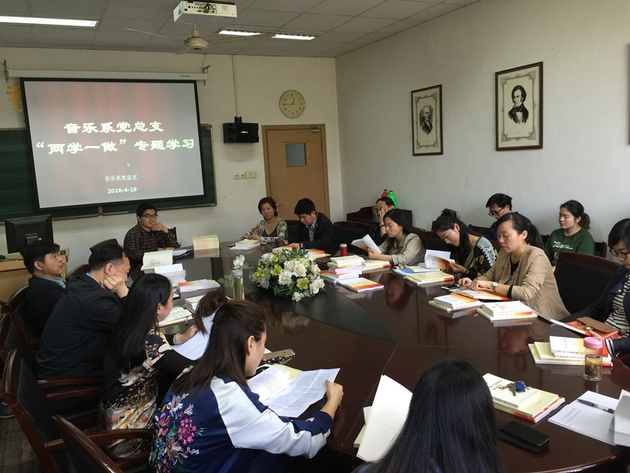 根据院党委对“两学一做”专题学习的部署,音乐系党总支于4月19日召开“两学一做”专题学习会。系全体党员师生参加了本次学习。