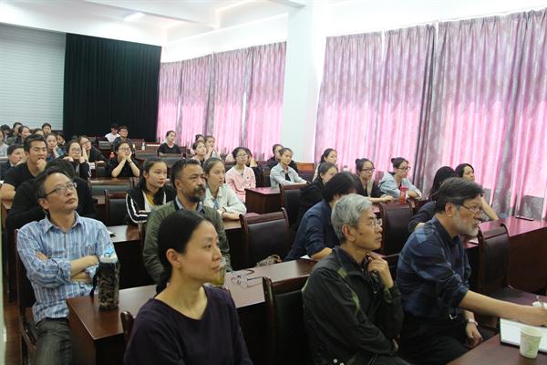 提问互动环节,科研处教授施王伟、周立波向朱恒夫提出了专业性很强的问题,他均予以细致独到的回答。由此,他还提到了有关中国戏曲文化传承与保护的问题。他说,在社会多元化发展的进程中,人们一昧崇洋媚外,传统戏曲的受关注度越来越低,如何保护传统戏曲文化及其发展已成为今后的一大题。借此,朱恒夫呼吁大家关注并传承保护中国戏曲文化。