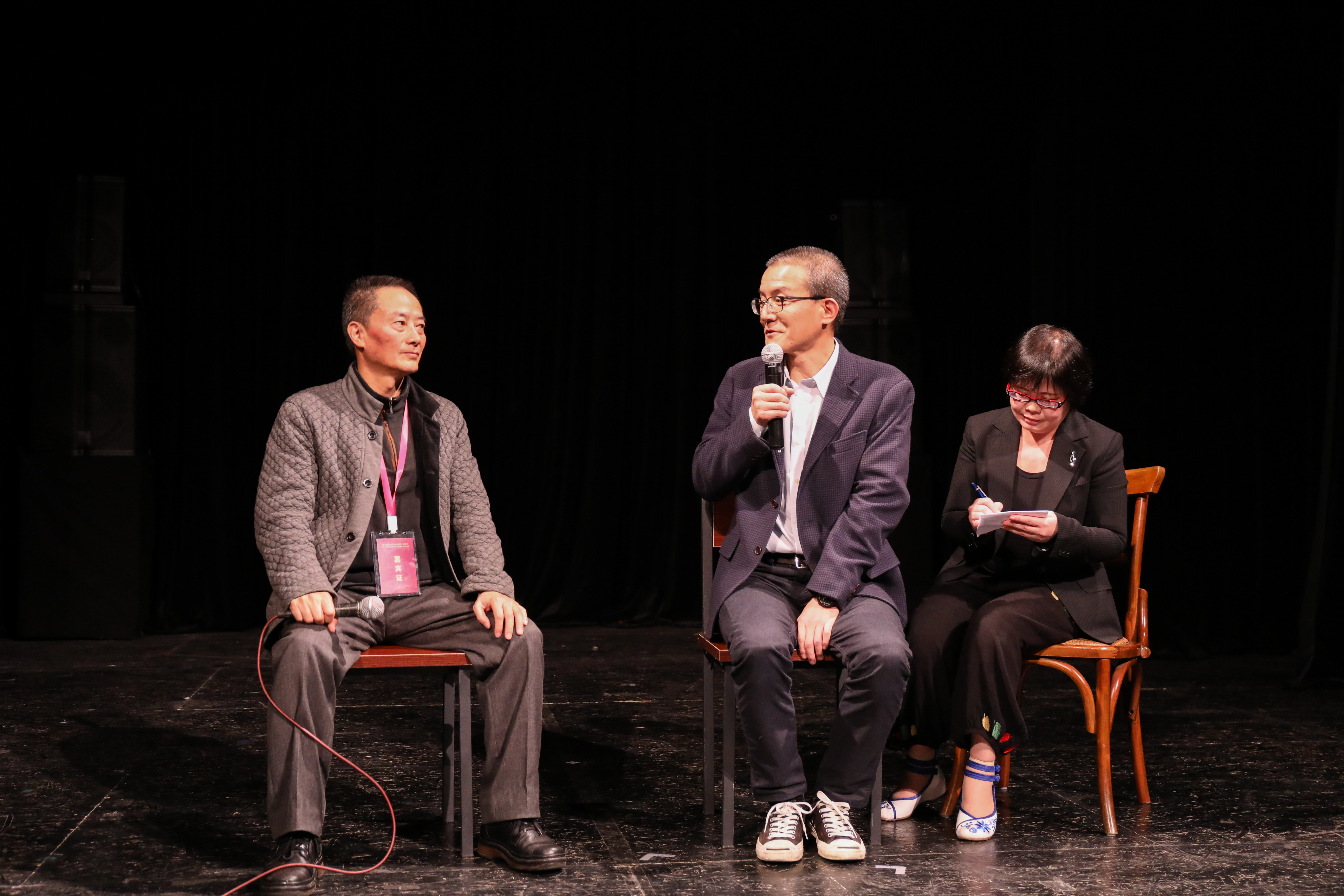 演出结束后,戏剧评论家吴卫民邀请话剧《贵妇还乡》导演中岛谅人与观众见面交流,吴卫民畅谈了话剧观后感,他表示,这部话剧跟中国有很深的渊源,这部话剧非常精彩,社会意义也非常深刻。随后,中岛谅人介绍了鸟之剧场剧团并与观众交流互动。