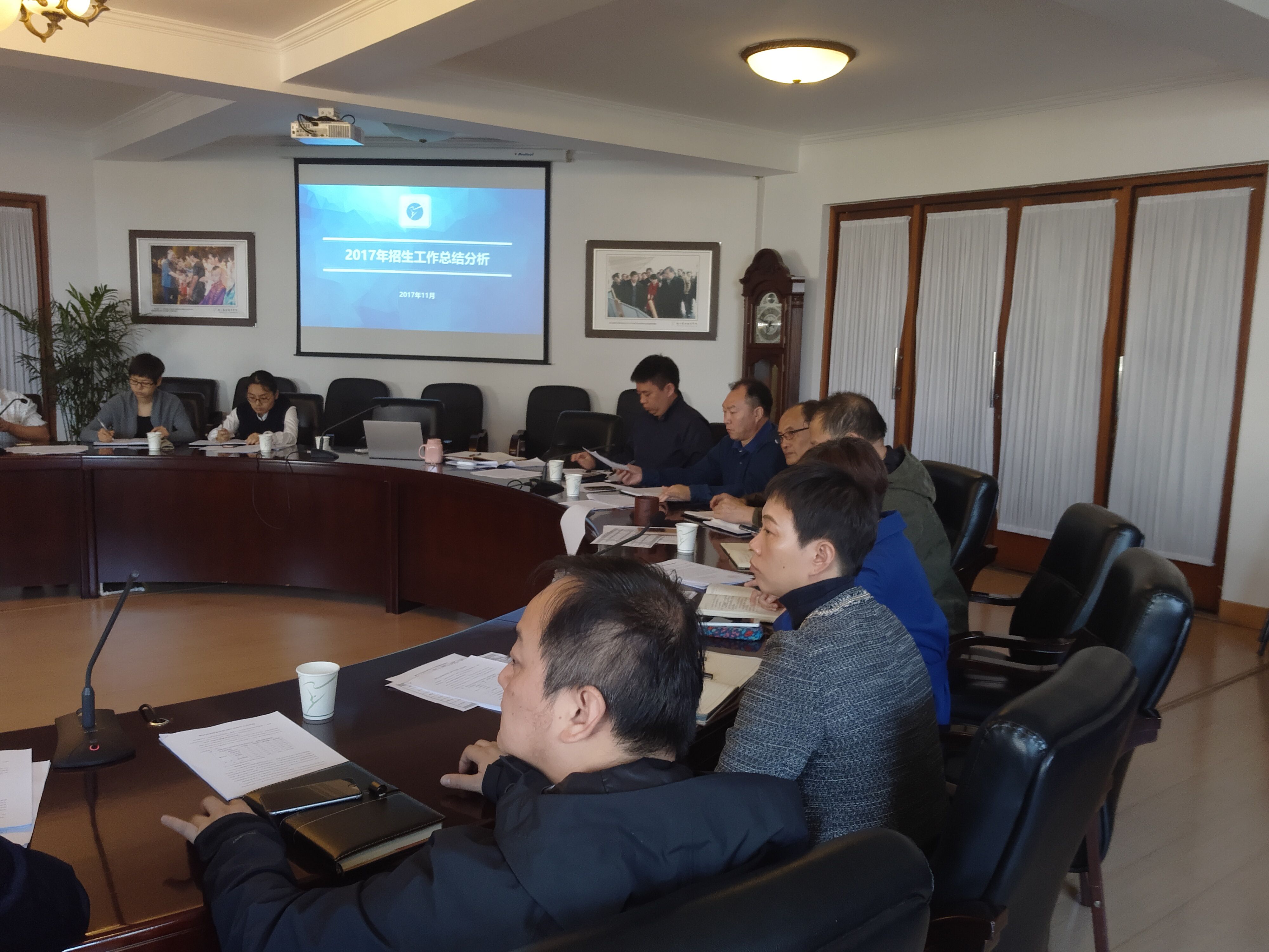 会上招生就业办公室从录取情况、招生计划及执行情况、录取数据分析、报到数据分析以及招生工作中存在的问题等方面对2017年学校招生工作进行了回顾和总结,同时提出了2018年招生工作的设想和思路。