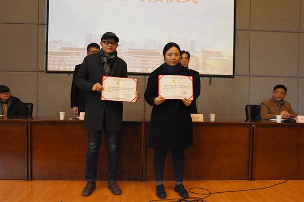 大会上,两校签订了校级交流生联合培养协议书,为交流生班主任颁发了聘书,同学们佩戴上对方学校的校徽。2018年3月至7月,我校美术系广告设计与制作专业学生和浙江商业职业技术学院视觉传播设计与制作专业的学生将各自到对方院系交流学习一学期。