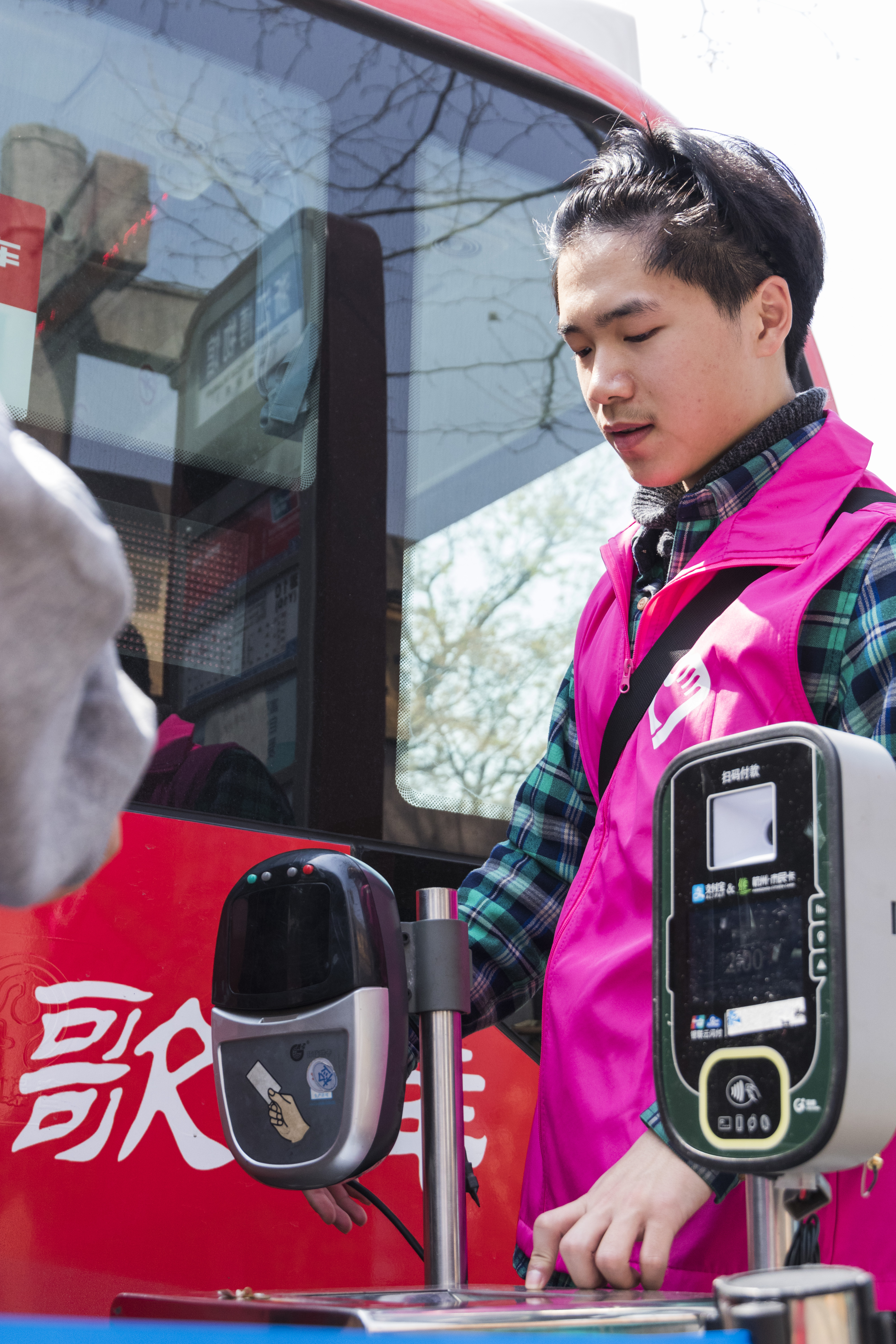 志愿者们分成馆内馆外两个分队。一队在馆内听从博物馆工作人员任务分配,做来客咨询、问卷调查、展览讲解、馆区引导等工作,另一队在馆外周边的三个公交站点协助公交公司工作人员维持秩序、为游客指路、引导智能支付等工作。当天参与活动的同学们都表示度过了愉快而充实的一天,觉得这样的志愿服务很有意义,希望通过他们的携手助力,能让游客在美丽的西湖边、底蕴深厚的博物馆内度过美好时光。