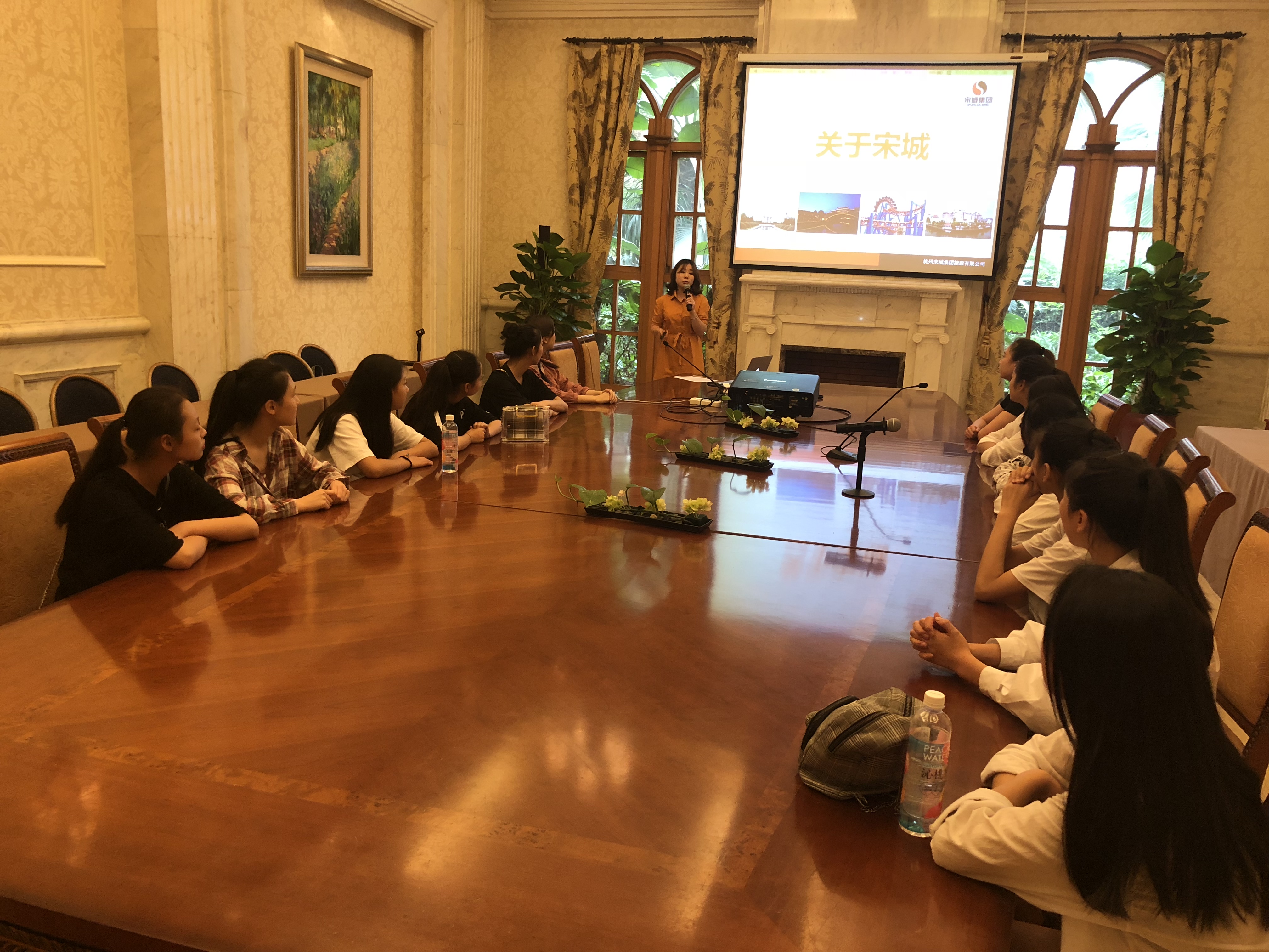 参观结束后,同学们与宋城集团领导开展交流,汇报了在浙艺一年来的学习心得和体会,畅谈在校期间的学习生活情况。同学们纷纷表示,之前虽然对宋城集团有所了解,但通过这次实地走访和参观,更加深入地了解了宋城集团,对自己既是学生又是将来宋城集团员工的双重身份感到骄傲和自豪,必将会加倍努力,以优秀的成绩来回报集团及学校。