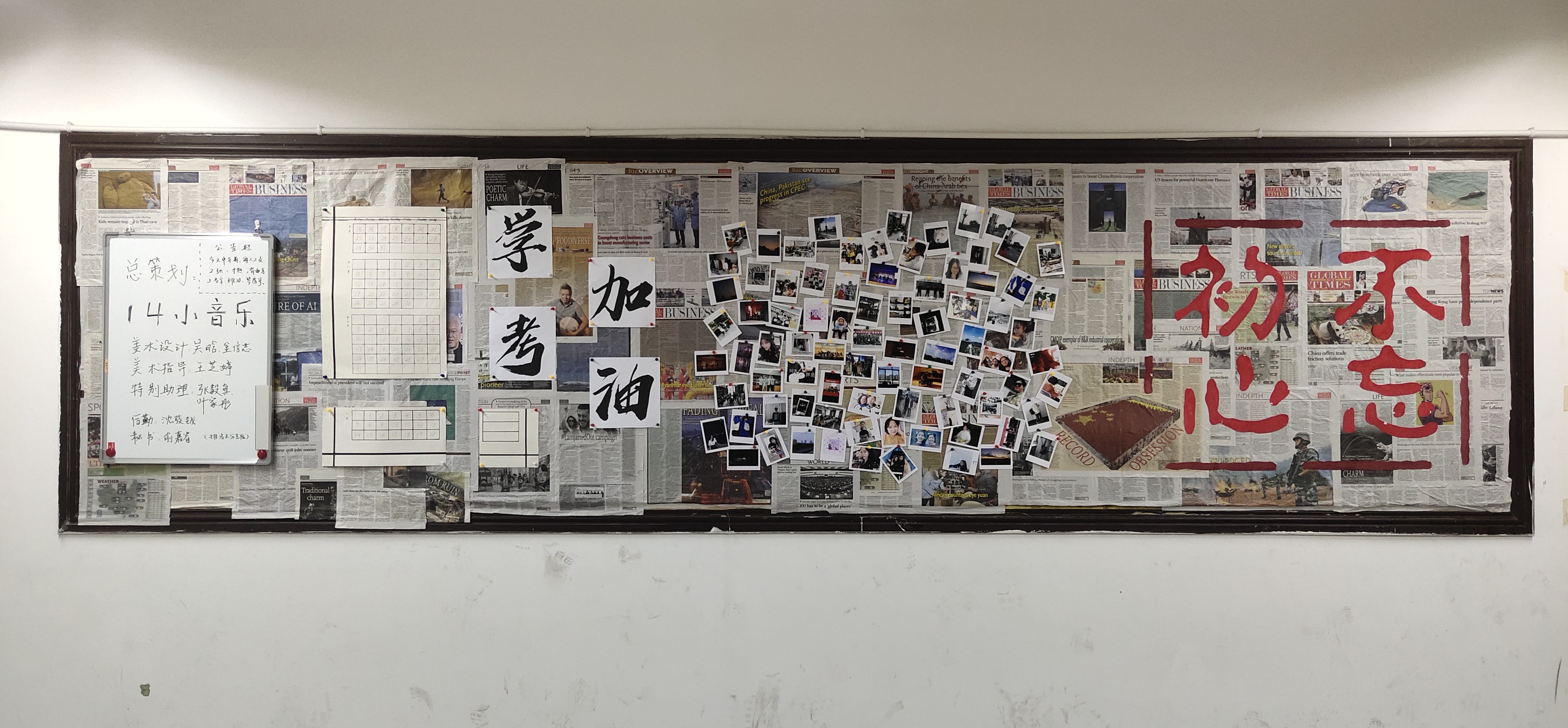 本次活动自开展以来,得到全校各系、各班的积极参与,同学们利用课余时间美化布置教室,创造怡人的学习环境,营造良好的教室文化。有的班级把“勇于追梦,勤于圆梦”的青春志向画成板报予以展示,有的班级将“班级公约”上墙入心,有的班级把读书角、学习心得、摘抄笔记布满整个教室,还有的班级利用将废弃物再美化衍生出新的装饰物品……各系各班通过板报、墙体美化等形式,既强调创意,又倡导环保节约,还关注人文理念,体现出独特的班风、系风、学风。