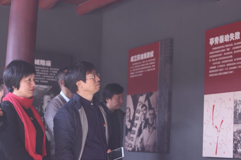 党员同志们首先来到了“亭旁红色”主题广场,高高伫立的“浙江红旗第一飘”因亭旁起义得名。亭旁起义,是中国共产党领导下由包定等人组织领导的农民起义,成功建立了浙江省第一个苏维埃政府。同志们瞻仰了亭旁起义纪念碑,为那些在起义中为党为民英勇牺牲的革命烈士鞠躬默哀。接着,党员们参观了亭旁起义纪念馆和包定故居,详细了解革命烈士的光荣事迹和大无畏精神,被包定不懈奋斗的革命热情所感动,深切感受到共产党人坚定不移的理想和信念。