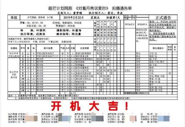 非常开心能够成为《对着月亮说爱你》工作组的一员,这是我第一次参与大型剧组的外联工作,不管是导演跟摄影组的沟通,灯光组对于灯光的呈現,还是美术服化组对于拍片的态度,都让我学习到了不少,也更加明白了剧组组员间团队相互配合的重要性,希望自己在今后拍摄作品的过程中也能做的那么好!