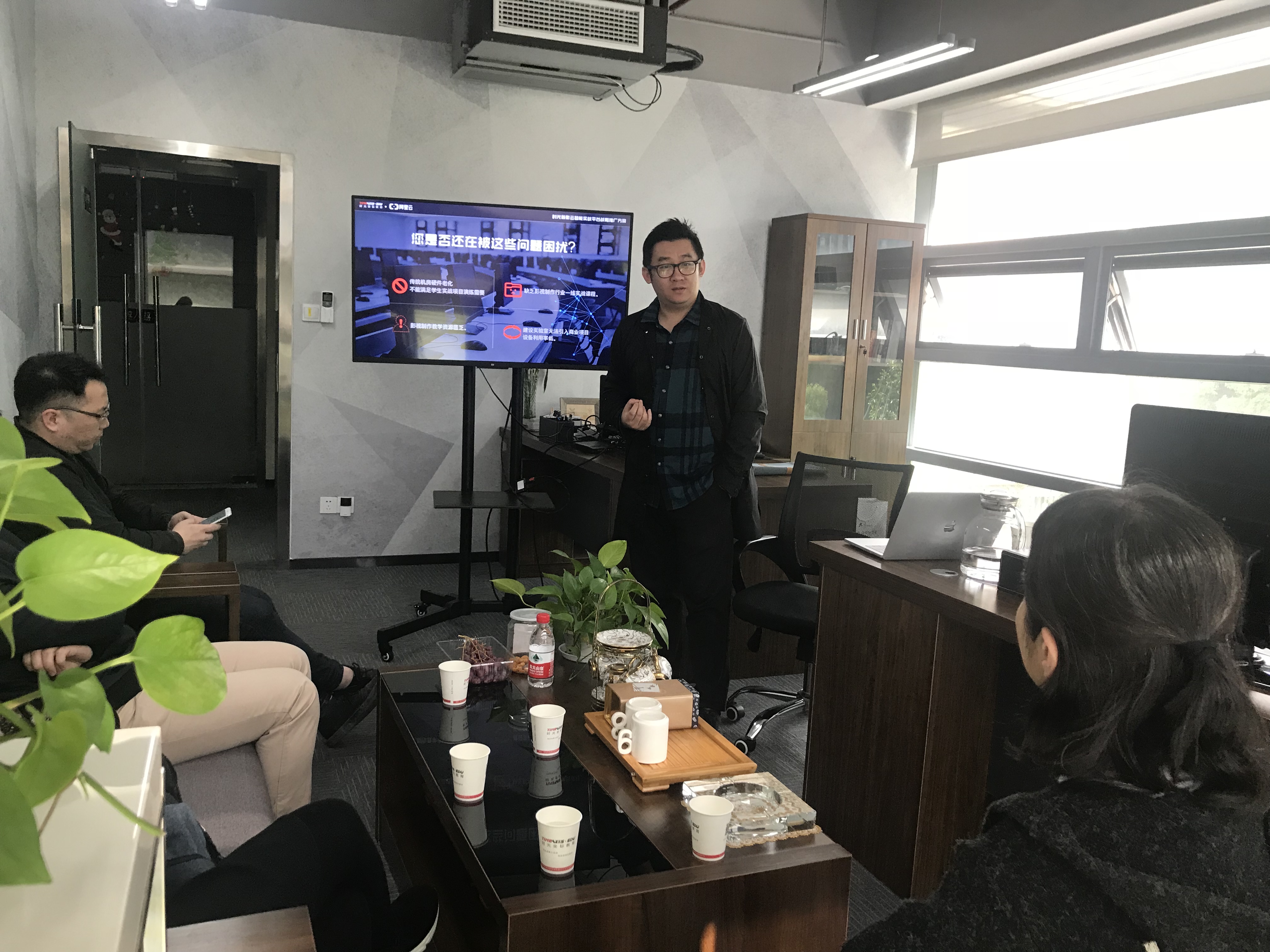 此行教学团队还参观了时光新影教育的线下课堂学习环境,并就我系9名已经加入了时光新影教育后期制作培训学校影视剪辑、栏目包装及后期合成等相关课程学习的同学的学习情况进行了专题座谈。