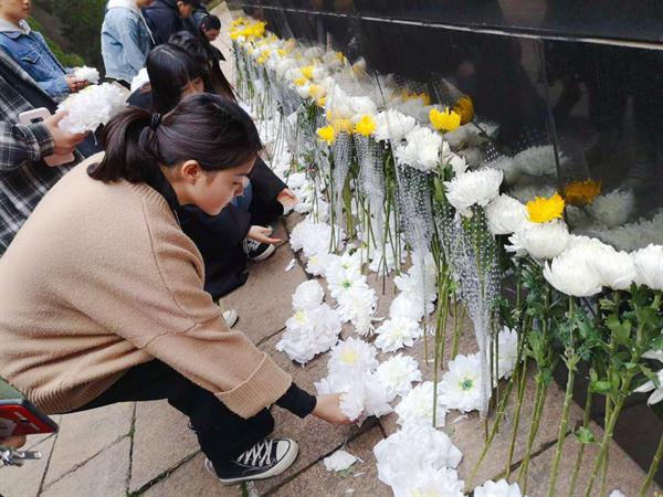 在前一天下午,音乐系学子怀揣着崇敬之心,亲手制作了寄托哀思的小白花,来表达对先烈们的由衷敬意。