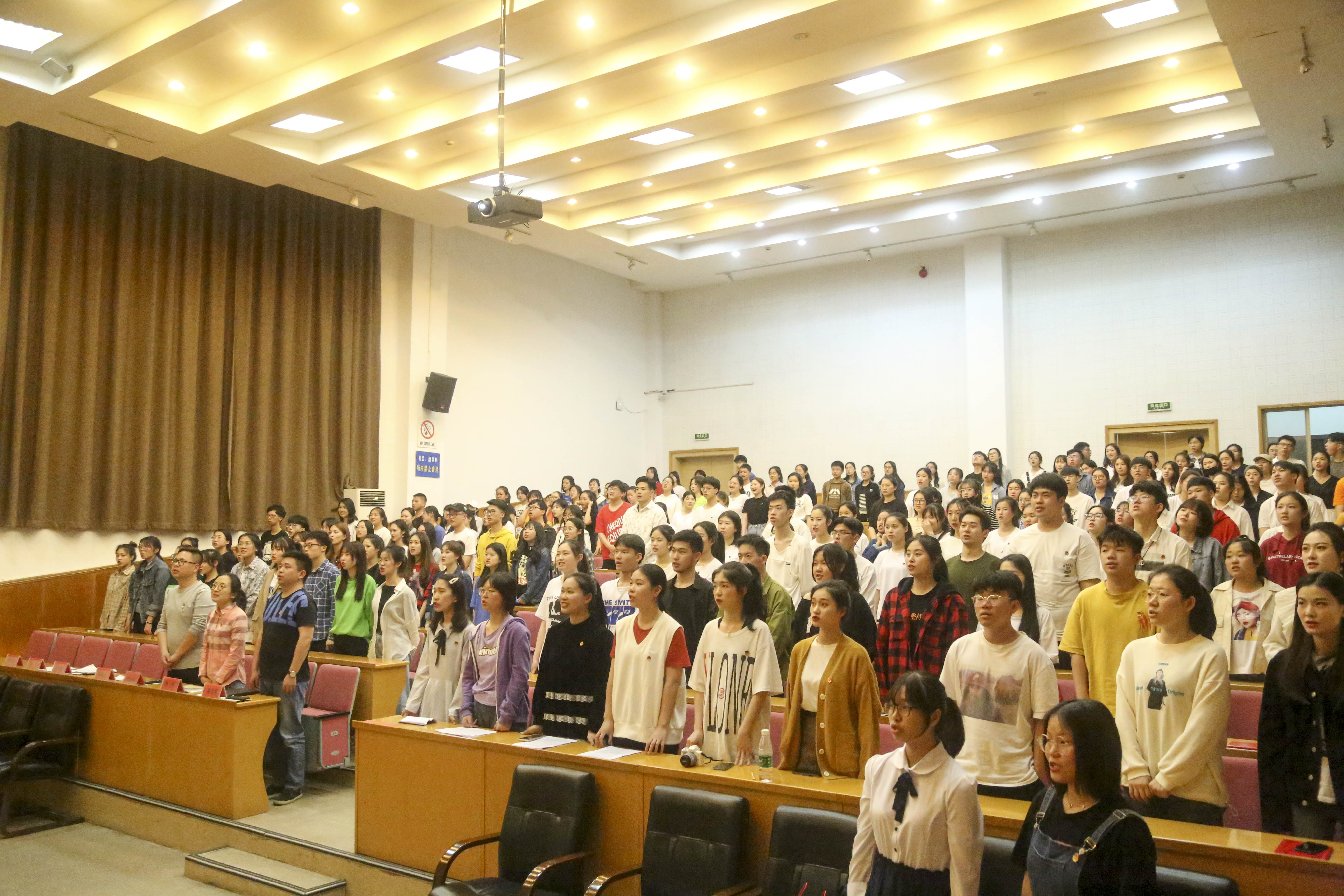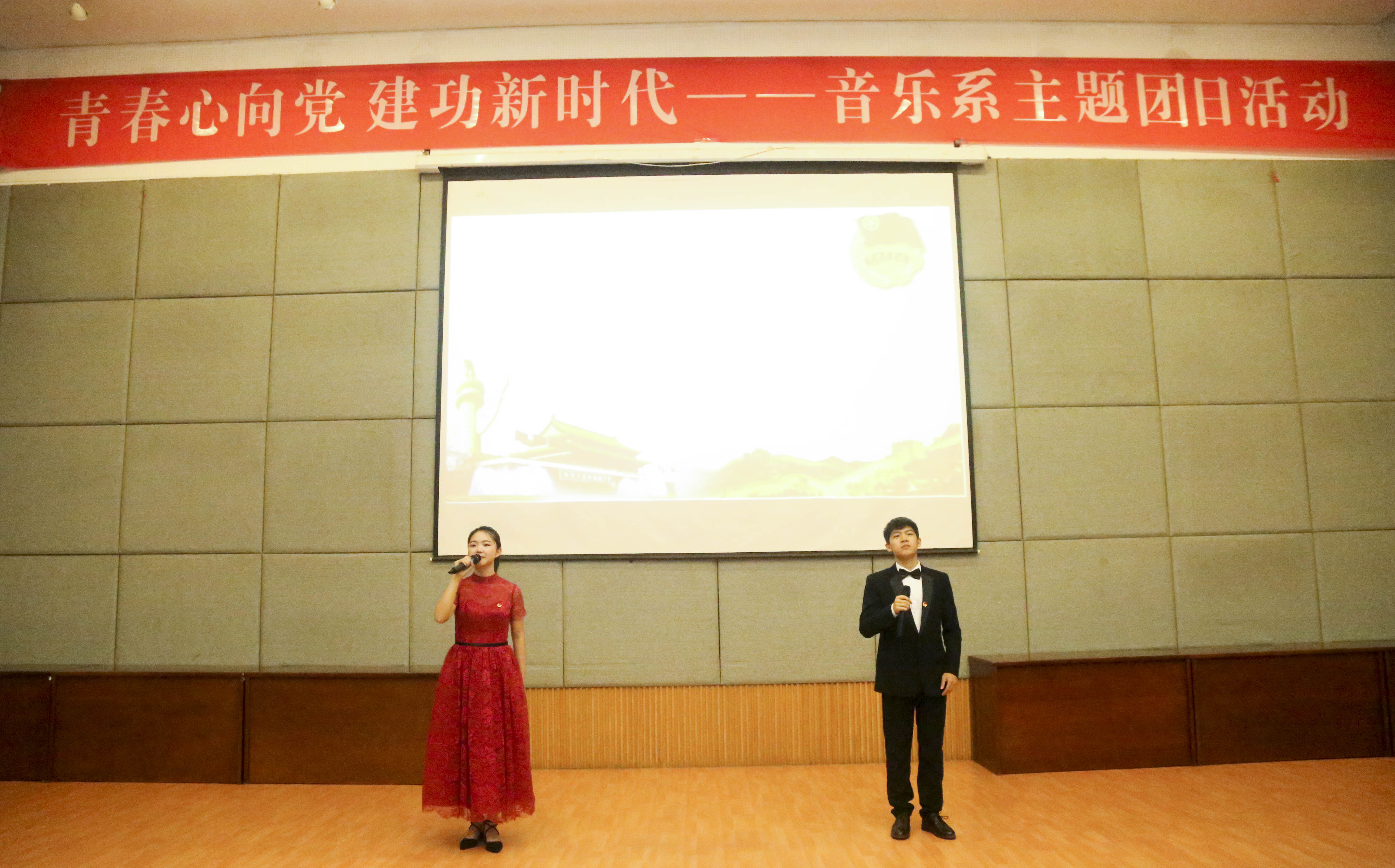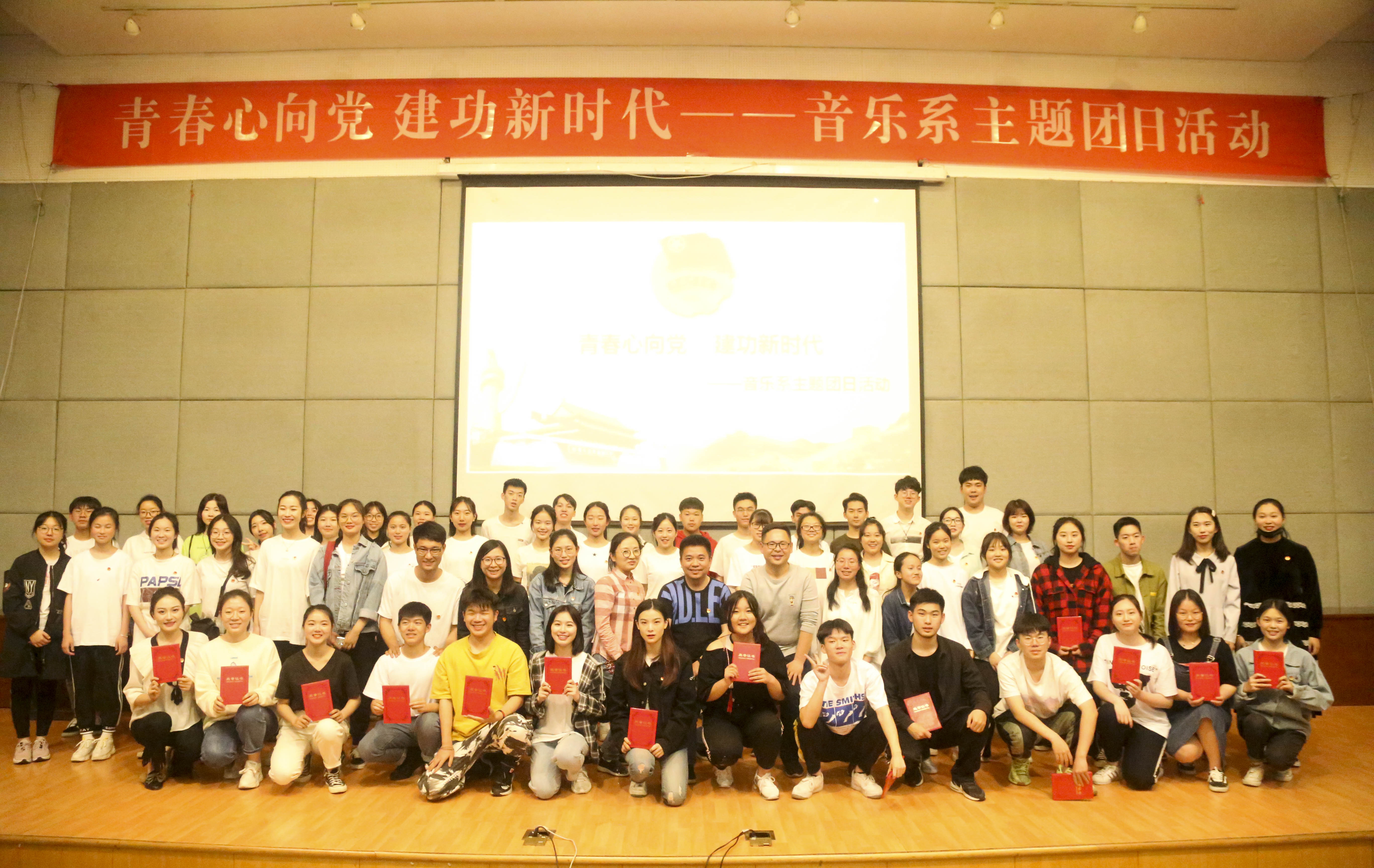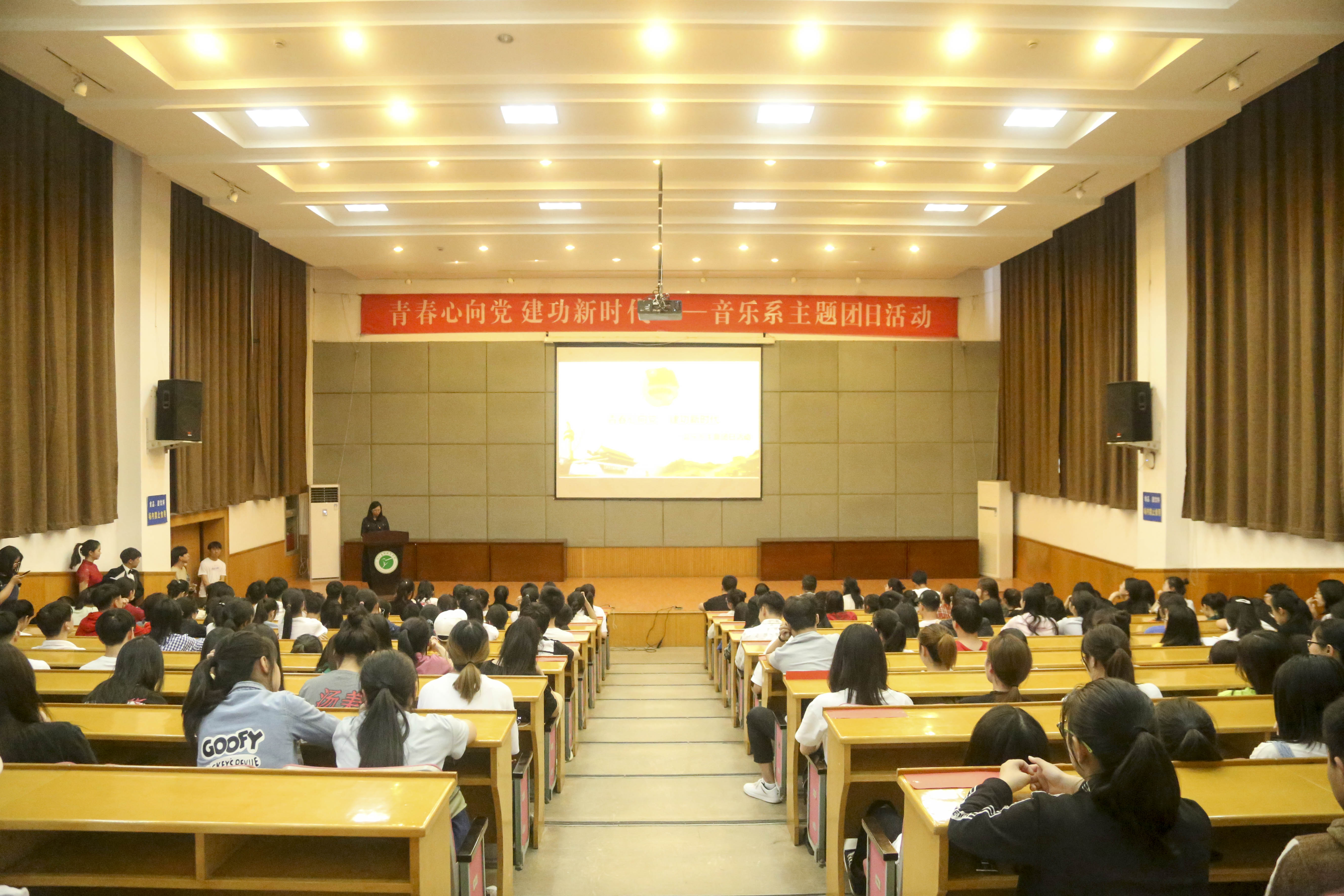 百年青春心向党,矢志建功新时代。5月5日,浙江艺术职业学院音乐系在学校图信中心报告厅举行纪念五四运动一百周年“青春心向党 建功新时代”主题团日活动。校团委书记郑吟、音乐系党总支专职副书记谢志勇、全体辅导员、团员代表、入党积极分子、党校学员以及全体团干部等近两百人参加。音乐系团总支书记主持团日活动。在庄严的国歌声中,团日活动拉开序幕。