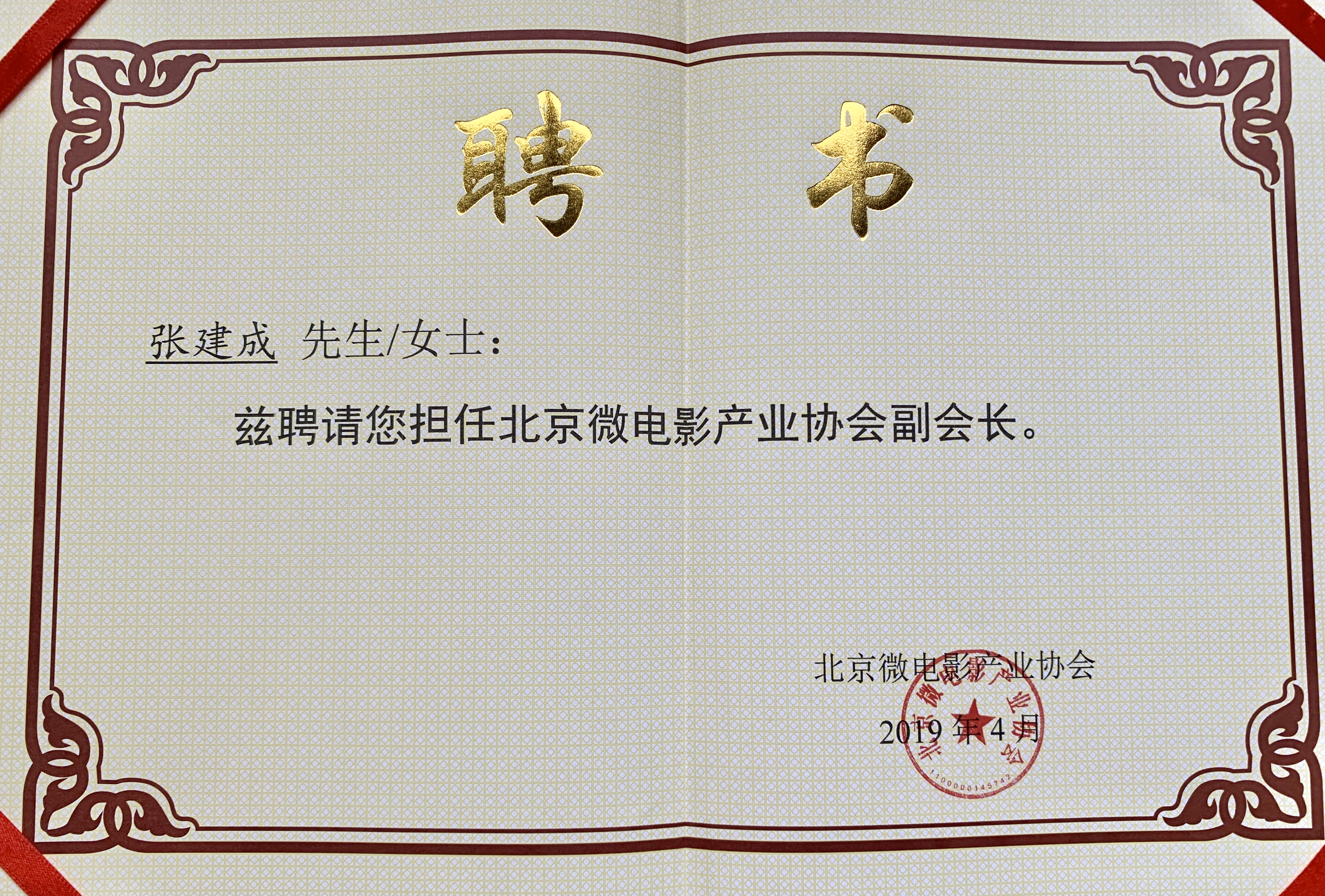 创作中心张建成当选北京微电影产业协会副会长