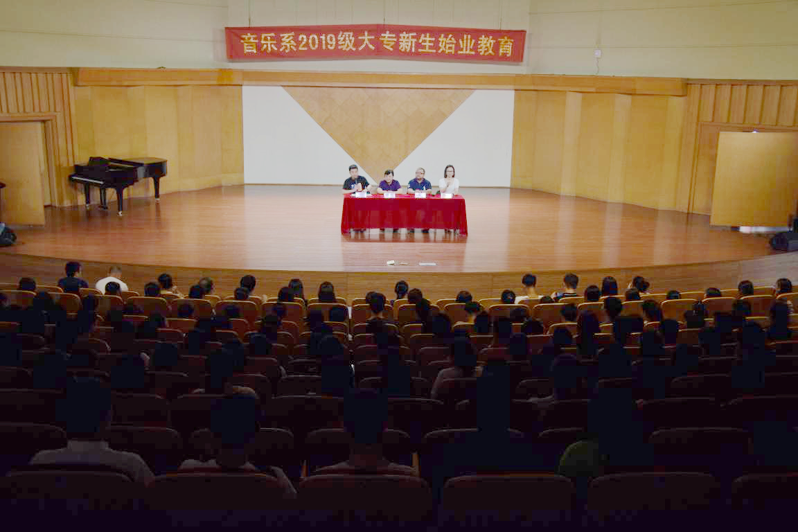9月8日下午、9月9日上午,音乐系在学校音乐厅举行2019级高职新生始业教育。期间,组织系领导班子、全体辅导员、班主任与新生见面会,进行部分专业课程建设的讲解,解读学校《学生手册》中相关内容,明确军训期间的教育管理制度。系领导班子成员、全体辅导员、2019级高职新生及班主任参加会议,系党总支专职副书记、系组织员分别主持会议。