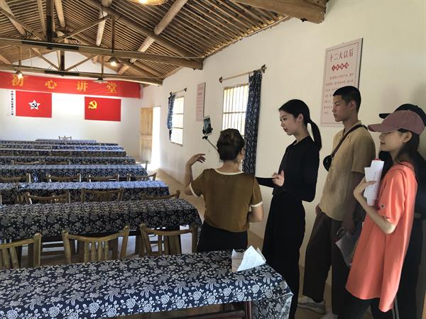 师生们到达仙居横溪镇,顾不上休息,马上组织开会讨论,与省文化和旅游厅派驻仙居县横溪镇垟庄村农村工作指导员颉顺虎了解直播村子的相关情况,查阅资料、明确直播流程、打磨脚本、细化分工。