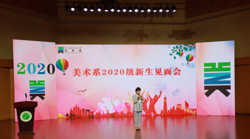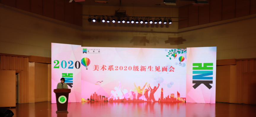 10月16日晚,美术系2020级新生见面会在音乐厅举行,美术系党总支书记汪琳、美术系常务副主任李昌国、美术系党总支专职副书记顾才铭以及全体教师参加。活动由美术系广告设计与制作专业教师娄旻主持。