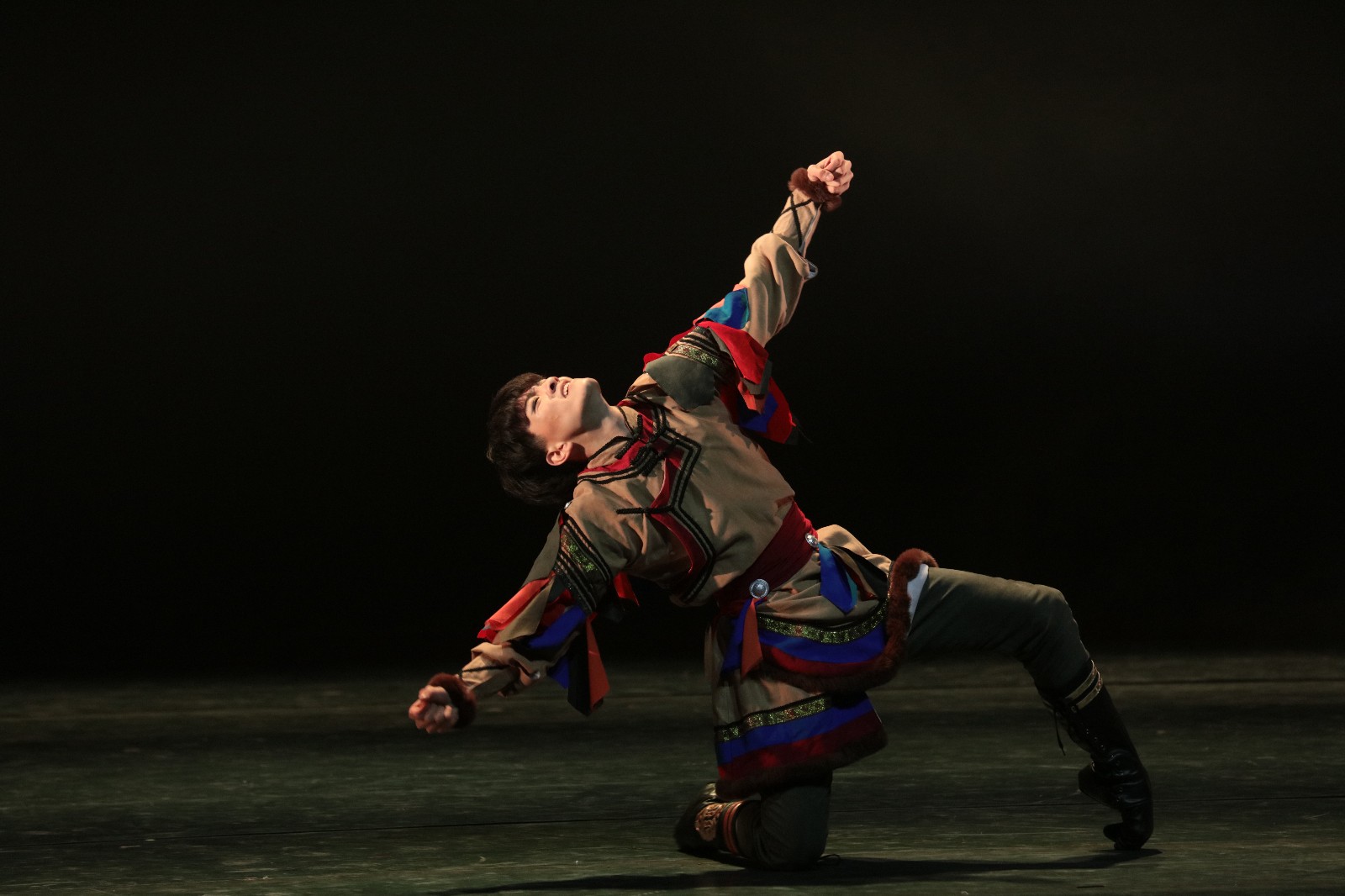 叶雨婷:蒙族舞舞蹈演员的自由奔放和粗犷美,一下子把人带到辽阔的草原上,感觉能跟着一起策马扬鞭,驰骋天涯。《热土》一开场两束黄色灯光从侧面照过来照亮舞蹈演员的造型,我一下子感觉到一股迅猛生长的力量。刚劲的动作,柔软的身形,随着音乐变换的节奏,传递出柔韧不屈的灵魂。