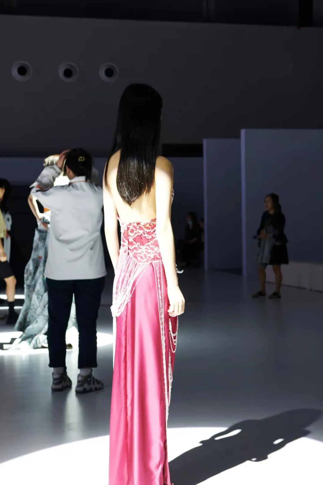 “下个月我即将毕业,这是我最后一次参与学校的演出,第三年参与杭州国际时尚周,此次感悟特别大,在后台学姐们帮助学妹们排序、整理服装,低年级学妹们有不懂的问题及时与学姐们沟通,在后台我也将自己以前演出过程中碰到的问题和学妹们进行交流,这既是自己初心的传承,也是自己部分工作经验的传授。在学校里老师们一直强调我们要有以老带新、以新促老,互帮互助、共同进步、比、学、赶、超的学习氛围。还有一个月就要离开学校走入社会了,十分不舍,希望学妹们越来越好!”