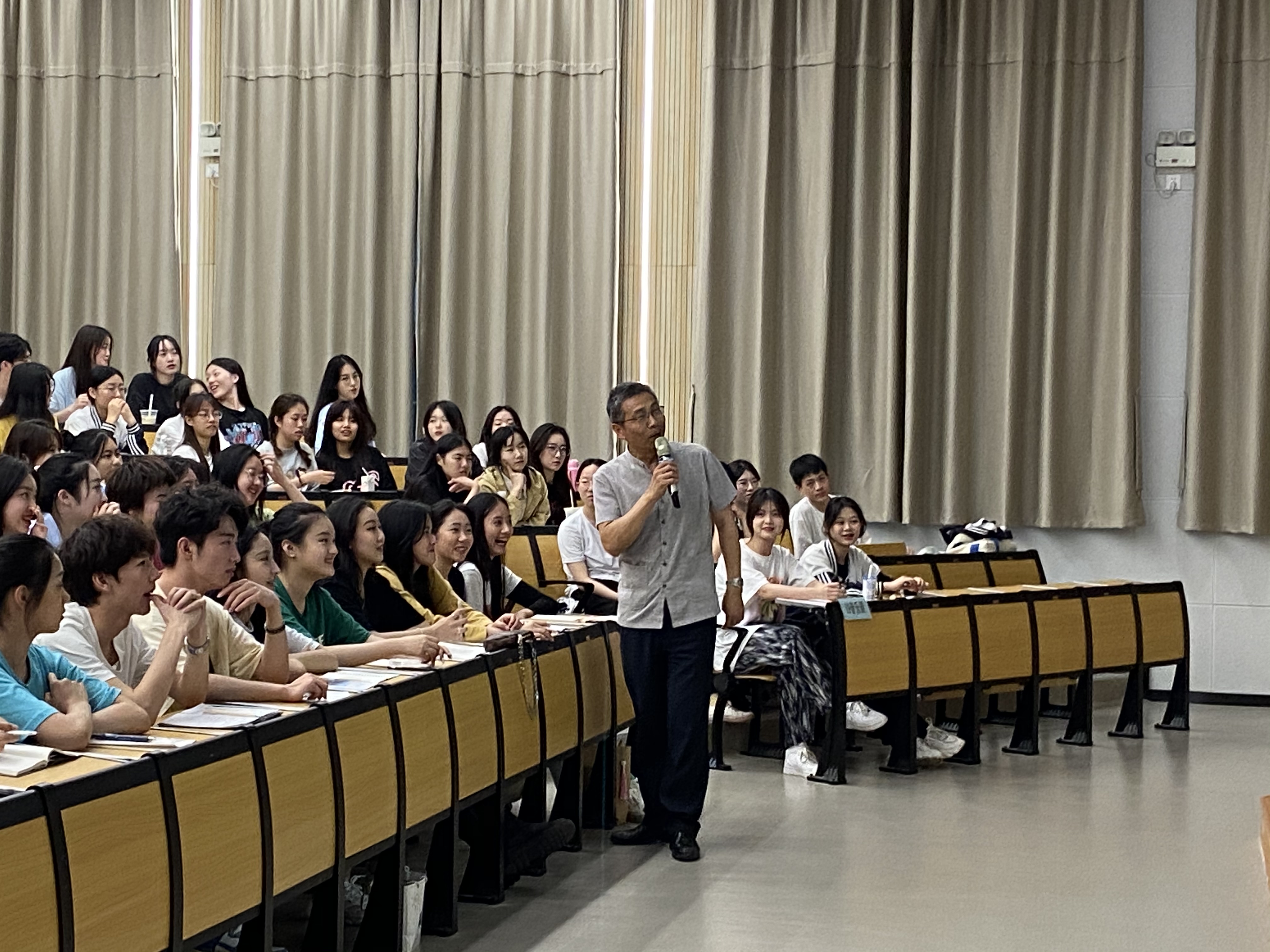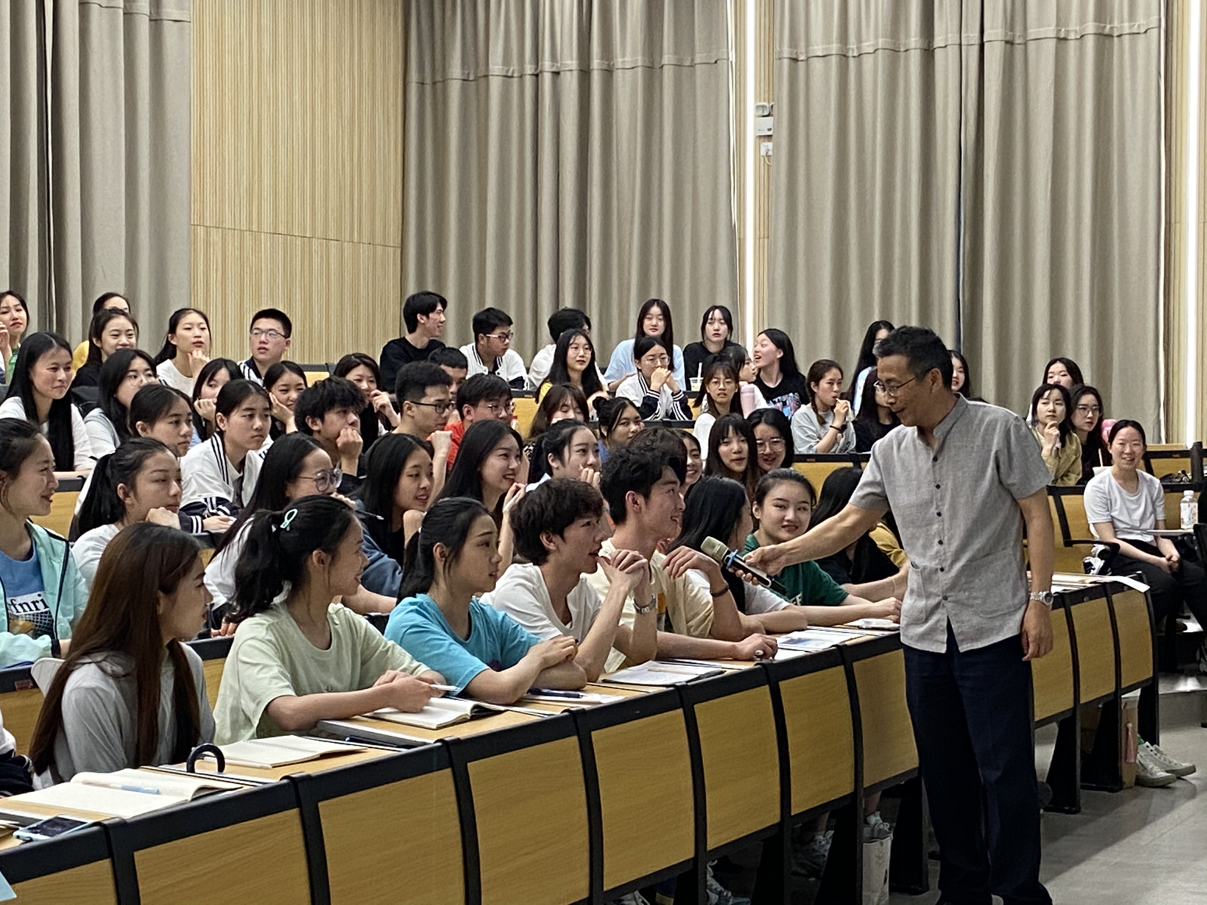 同学们时而奋笔摘录,时而抬头认真聆听,时而参与互动,学习气氛非常浓郁。褚老师亲切温和、精辟独到的讲解给大家留下了深刻的印象。尤其是再过20多天就要参加高考的高三学生,他们纷纷表示今天的讲座收获满满,“褚老师简直就是一场‘及时雨’啊,对我的考场作文太有帮助了!”