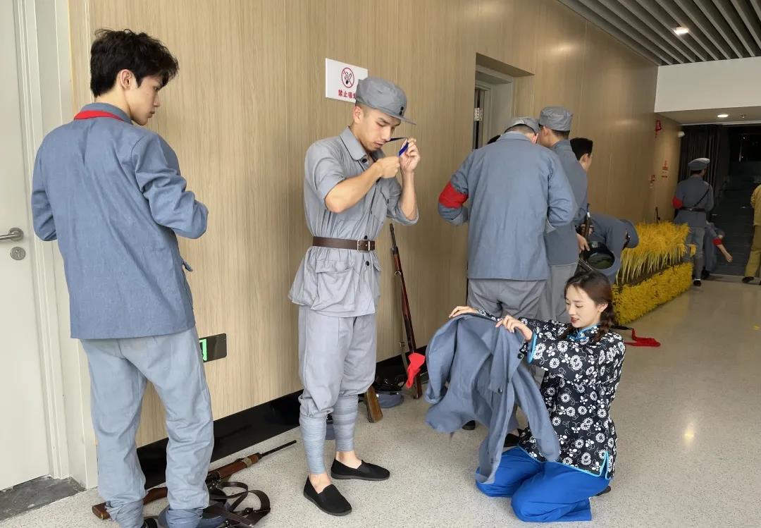 本次演出对参演的同学们意义重大,每一个人都在为党的生日用心准备着。此次演出,2300余人的演员团队来自浙江艺术职业学院、浙江演艺集团浙江歌舞剧院有限公司、浙江小百花越剧院等40余家省市级文艺团队,舞台规模大,如何与其他单位的演员、老师紧密合作,对参演的同学们提出了严峻的考验。戏剧系师生不负众望,用自己坚强的毅力,克服各种困难,一遍又一遍重复各个细节动作,最终在晚会中呈出了最佳的演出效果。