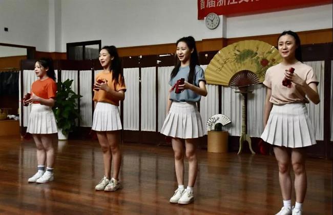 考试汇报中,同学们首先展示了快板的单点、双点、大板、开场板等基础功,第二环节展现了不同表现形式的快板节目。如快板《疫情阻击战》《夸夸好人全二平》《中华文化五千年》《天安门看升旗》《老师赞》音乐快板《别样风采看浙江》、音舞快板《祖国颂》。以此表达了对党和祖国的热爱,向建党百年献礼。通过本学期的学习,同学们更加喜欢曲艺表演这门课,综合表现能力得到了较大提升。