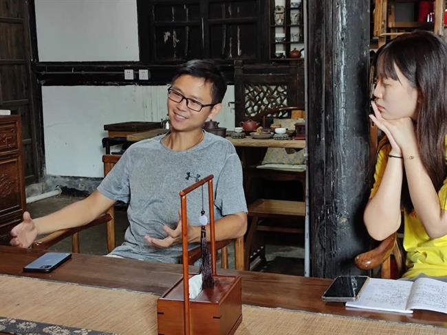 戏剧系暑期社会实践团队走进余姚横坎头村采访了网红大糕店“匠心坊”经营者黄金军,了解了这位80后党员秉持初心,与村民共同致富的创业故事。作为土生土长的横坎头村人,黄金军是吃大糕长大的。不过,2018年前,他做的是模具生意,从没想过“卖大糕”。如此大跨度的转行,是因为2018年村里发生的两件大事。一是那年2月28日,习近平总书记给村全体党员回信之后,来村的游客迅速增长,让黄金军“嗅”到了商机。二是那年,为改善生态环境,进一步发展红色旅游,村里决心搬迁存在污染的企业,企业一家家搬走,他的生意也变得不好做。压力山大,黄金军狠下决心:转行!他将自家车库改造成店面,将传统的宁波非遗文化——大糕与红色文化结合,在大糕上刻下“不忘初心、牢记使命”等字样,同时还为游客提供制作大糕的体验活动,让前来旅游的游客既能享受到纯手工传统糕点的美味,又能感受到红色精神。