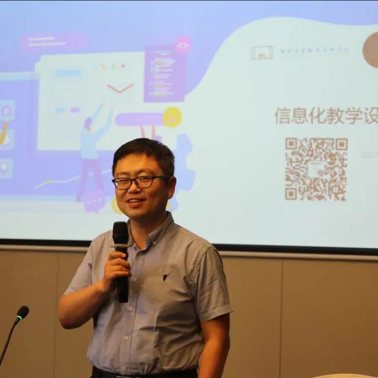 会议邀请浙江工商职业技术学院教师教学发展中心教学发展主管王璞作《信息化教学设计》专题讲座。王璞以信息化教学设计的最大特征-教学媒体是核心要素为切入点,结合生动的教学实例,对内容处理、学情分析、目标确定、重难点、教学策略、教学评价、课程思政和诊断改进等信息化教学的八个设计要素作了详细分析,他指出教学设计既是技术也是艺术,作为技术的教学设计是可以复制的,作为艺术的教学设计需要创造性。